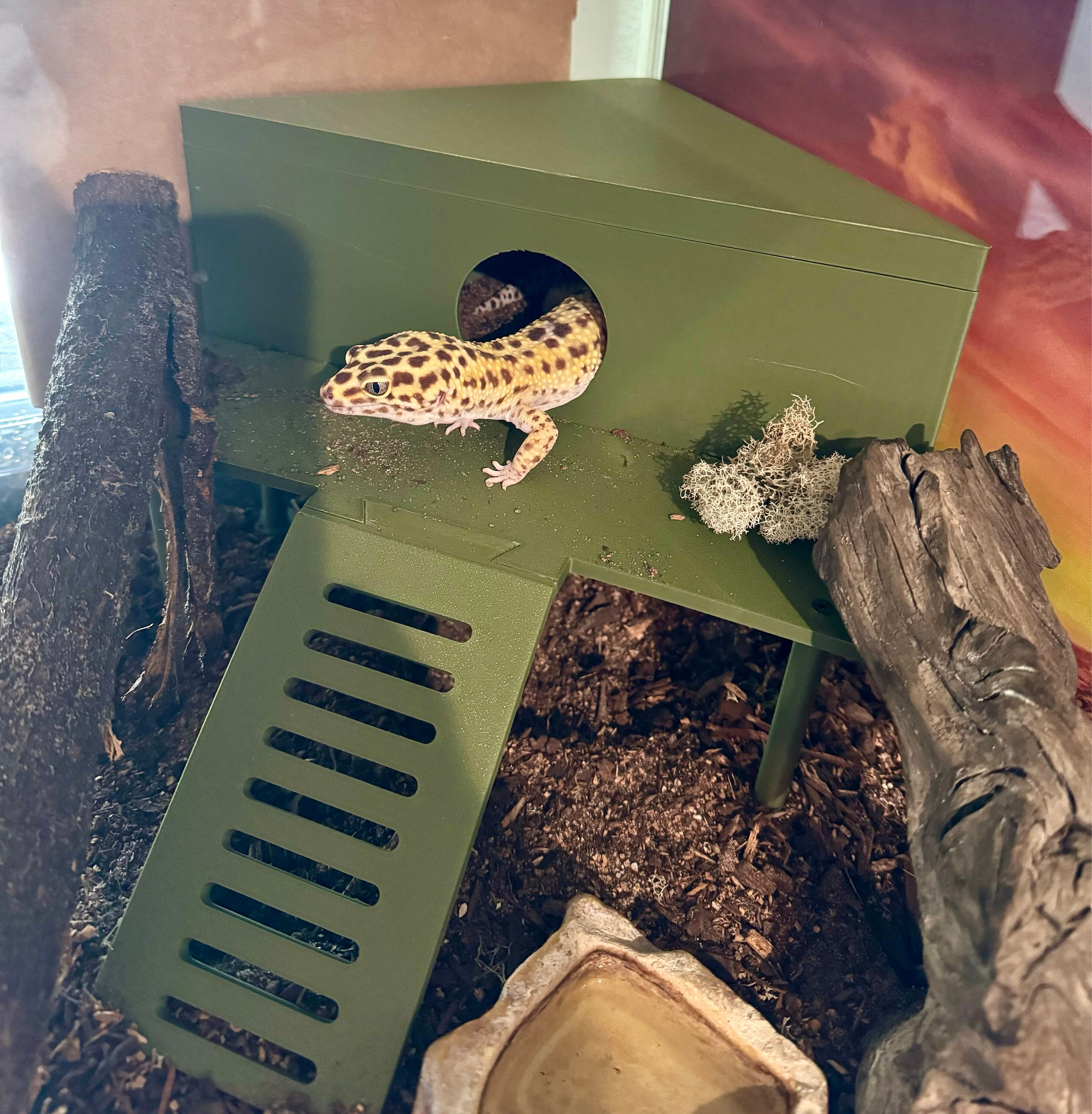 Donavan H OliverGARY LOVES IT!!!! This is a great addition to my leopard gecko. Highly recommended!! The communication was amazing throughout th... Read MoreGARY LOVES IT!!!! This is a great addition to my leopard gecko. Highly recommended!! The communication was amazing throughout the creation process and when shipped. Thank you so much! Will shop again!! HidePosted on -